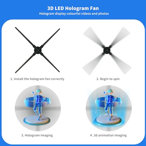 Resolución Ultra HD: este ventilador holograma de 29.5 pulgadas tiene 1184 cuentas de luz LED finas; sin pantalla; por lo que alcanza una resolución de 2000; muestra video 3D más brillante y claro; colores más vivos; para que puedas ver el video 3D en el pequeño logotipo o texto; para crear un holograma real a simple vista
