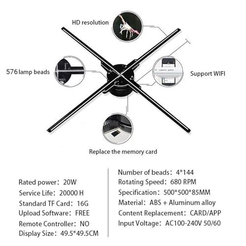 Ventilador De Holograma 3D Interactivo con Pantalla De Proyector Holográfico Pequeño For Exteriores De 50 Cm